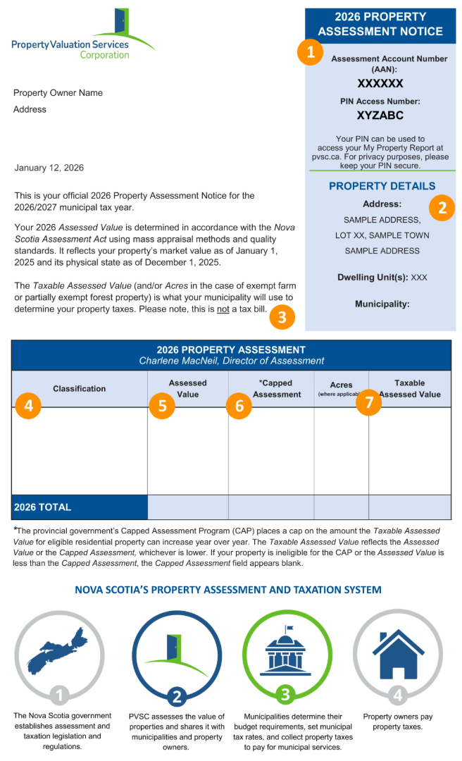 Property Valuation Services Corporation (PVSC) assesses every property in Nova Scotia and mails over 650,000 Property Assessment Notices to property owners every January.